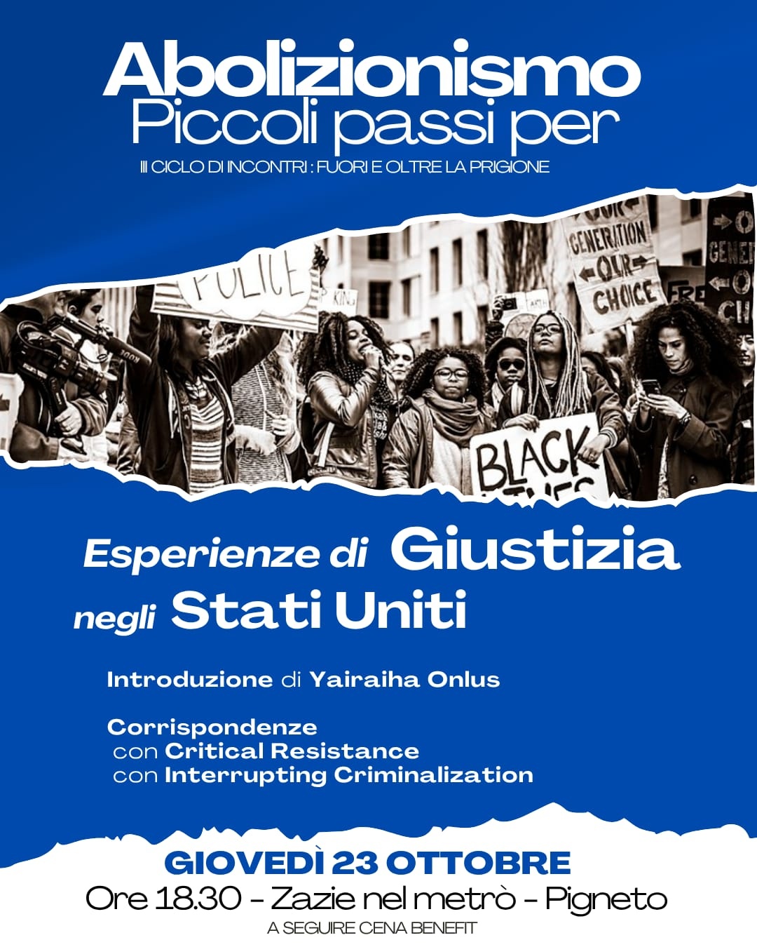 Introdurrà l'associazione Yairaiha Onlus e poi ne parleremo in corrispondenza con Critical Resistence e Interrupting Criminalization.