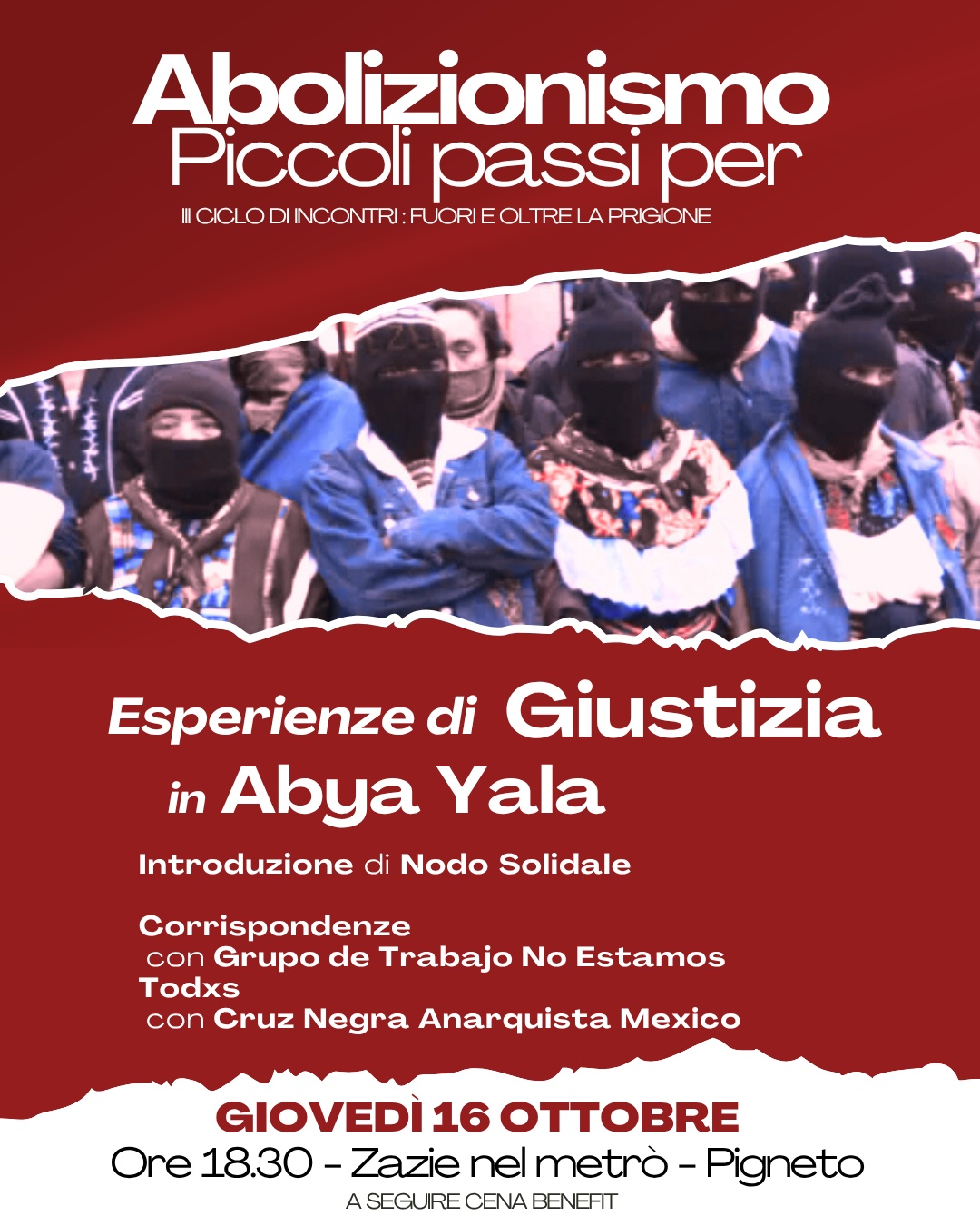 Ne parleremo con Nodo Solidale e in corrispondenza con Grupo de Trabajo No Estamos Todxs e Cruz Negra Anarquista Mexico.