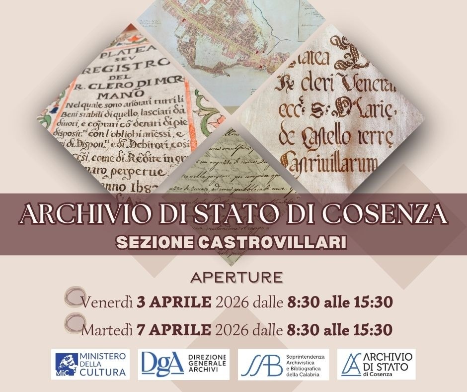 Prossime aperture dell'archivio di Stato di Cosenza sezione di Castrovillari.