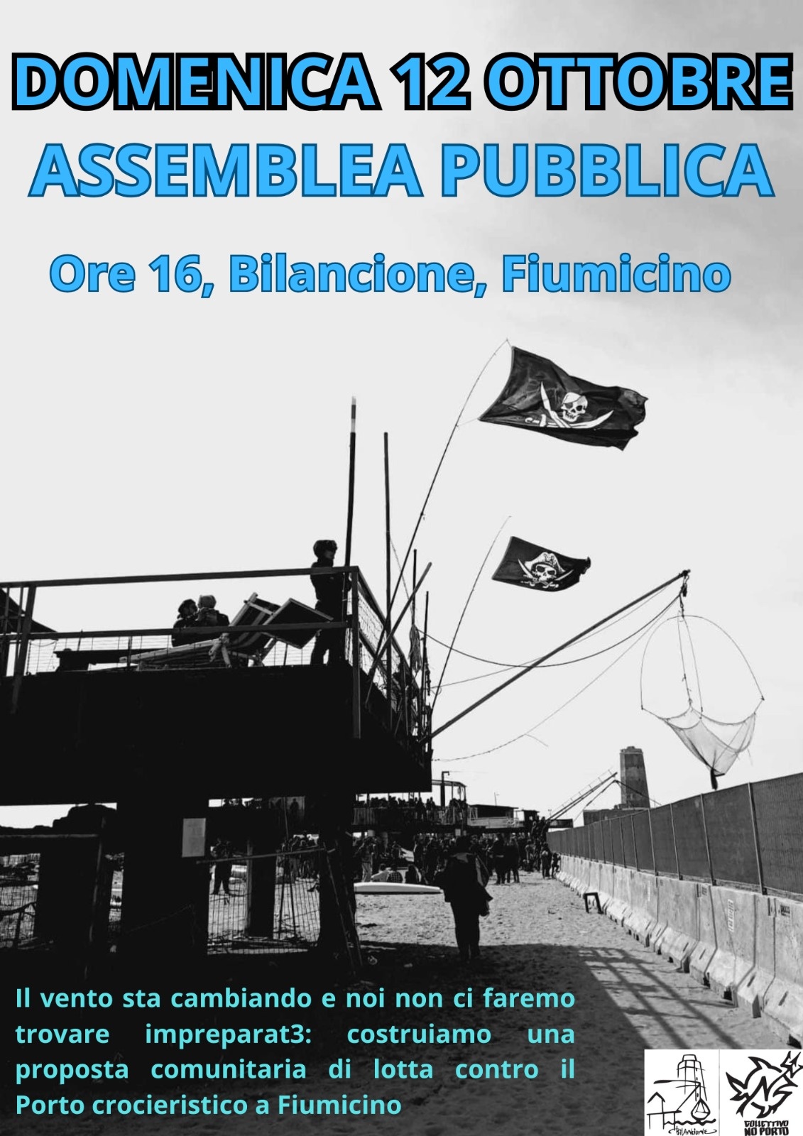 Assemblea pubblica al Bilancione a Fiumicino per aggiornarci sulla situazione dei lavori nell'area del vecchio Faro e della spiaggia dei Bilancioni e per costruire tutt3 insieme un cammino comune di lotta contro la costruzione dell'ennesima grande opera inutile: il porto crocieristico privato della Royal Carribean!