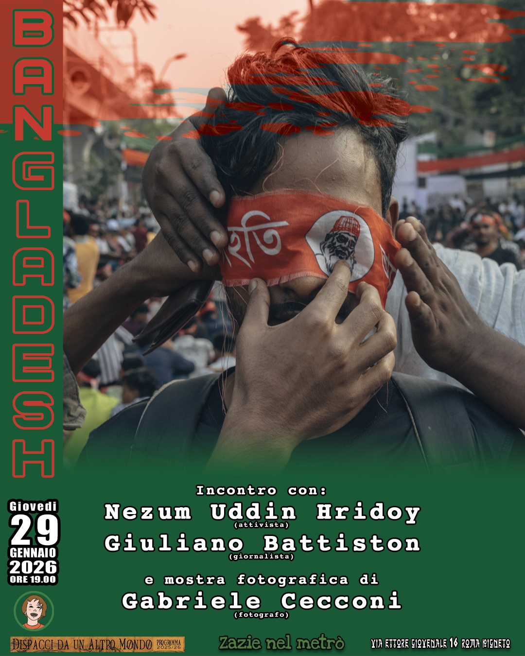 Ne discuteremo con l’attivista Nezum Uddin Hridoy, voce diretta del movimento studentesco bangladese, Gabriele Cecconi, fotografo documentarista che presenta una mostra fotografica sulle proteste e Giuliano Battiston, giornalista e ricercatore su conflitti e politica globale.