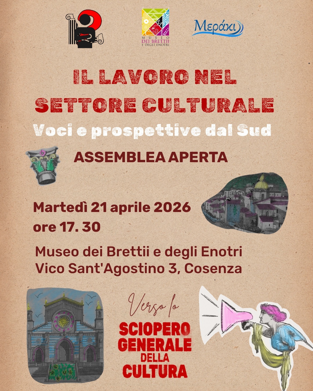 Durante l’incontro parleremo delle condizioni del lavoro culturale in Italia, segnate ovunque da precarietà, lavoro povero, difficoltà di accesso e permanenza nel settore e da una diffusa carenza di opportunità. Lo sguardo partirà dal Sud, non luogo dell’eccezione, ma spazio in cui queste condizioni sono amplificate dalla scarsità di infrastrutture, servizi e luoghi di formazione. Raccoglieremo testimonianze e proporremo prospettive per il Meridione, diventato terra di resistenza attraverso pratiche di restanza, auto-organizzazione e costruzione di alternative.