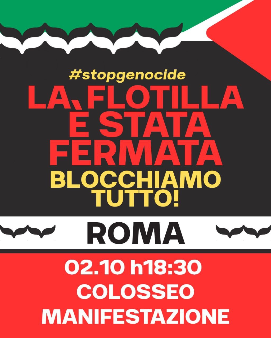 โต Partire al fianco della popolazione palestinese, per fermare il genocidio, per rompere l'assedio, per aprire un corridoio umanitario permanente, per porre fine ad un'occupazione infame in Palestina, per liberare l'equipaggio della Global Sumud Flotilla sequestrata in acque internazionali dalle forze di occupazione israeliane