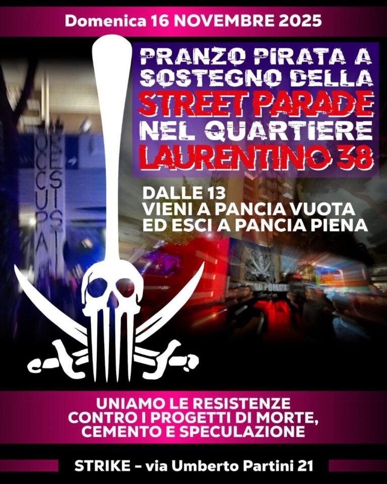 Domenica 16 novembre – Pranzo pirata a Strike a sostegno della street parade nel quartiere Laurentino38