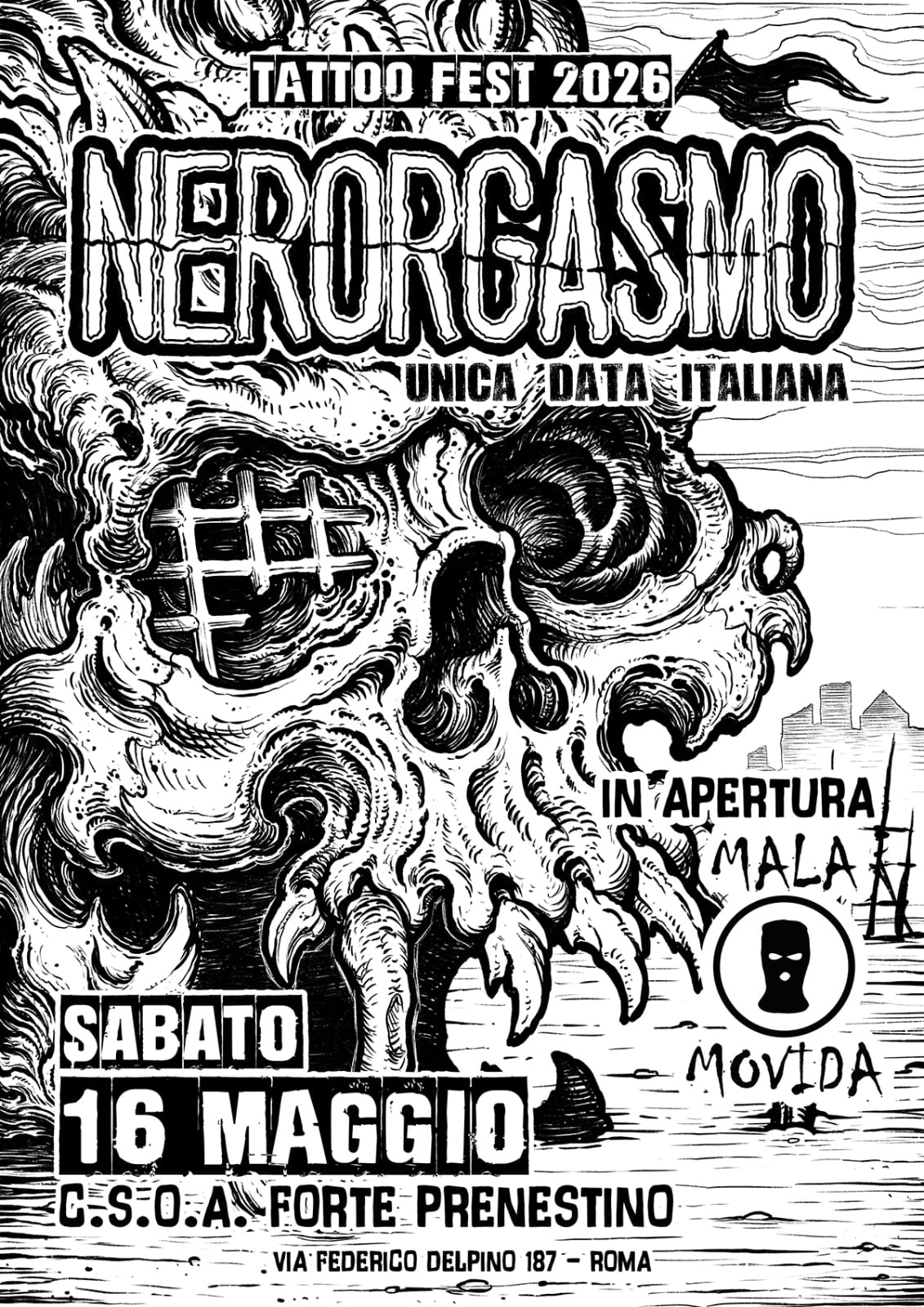 All’interno della due giorni tra tattoo, performance, presentazioni, musica e banchetti, in concerto per la loro unica data italiana i NERORGASMO preceduti in apertura dai MALA MOVIDA.